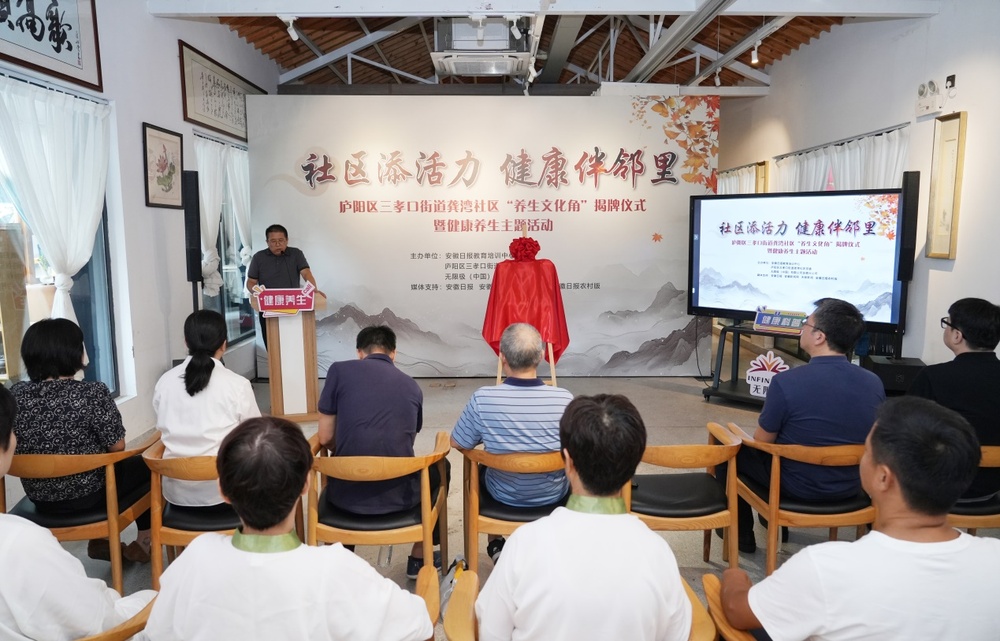 9月5日上午,由安徽日报教育培训中心、合肥市庐阳区三孝口街道龚湾社区党委、无限极(中国)有限公司安徽分公司联合主办的“养生文化角”揭牌仪式暨健康养生